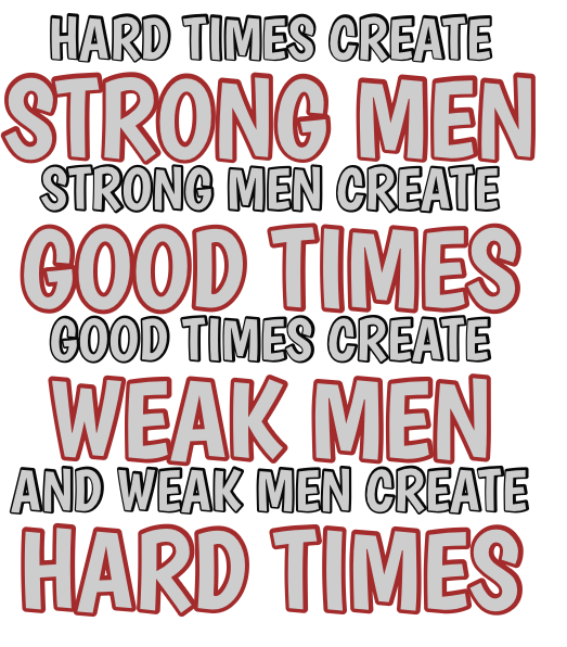“Hard times create strong men. Strong men create good times. Good times create weak men. And, weak men create hard times.”