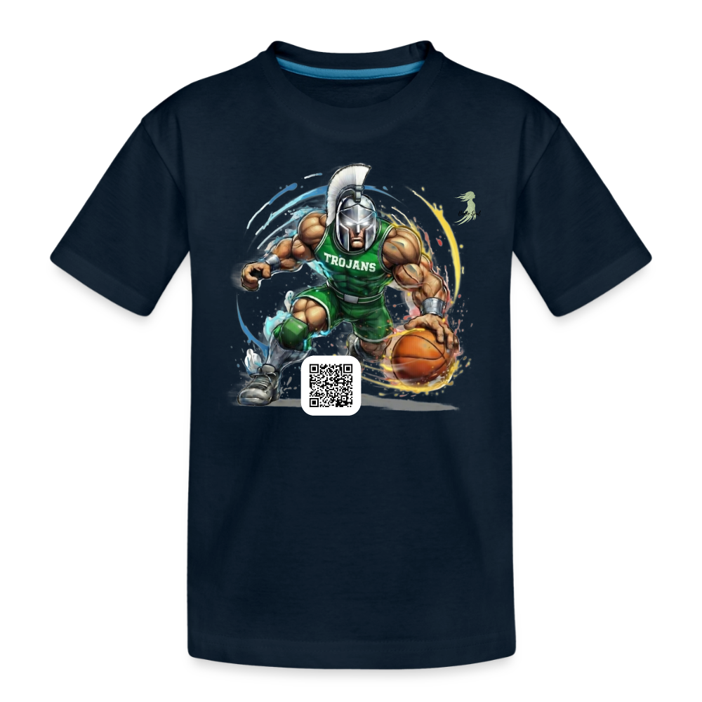 Unleash your inner warrior on the court with this epic Trojan Basketball Tee! Featuring a fierce, muscle-bound Trojan gladiator in a dynamic dribble stance, clad in a vibrant green jersey emblazoned with “TROJANS” and silver armor accents, this graphic blends ancient valor with modern hoops intensity. His glowing white eyes and majestic white plume helmet radiate unstoppable power, making it the perfect design for basketball fans, athletes, or anyone ready to conquer the game. Printed on soft, premium cotton for all-day comfort—wear it to dominate pickup games or cheer from the sidelines! Scan the QR code to see the video!