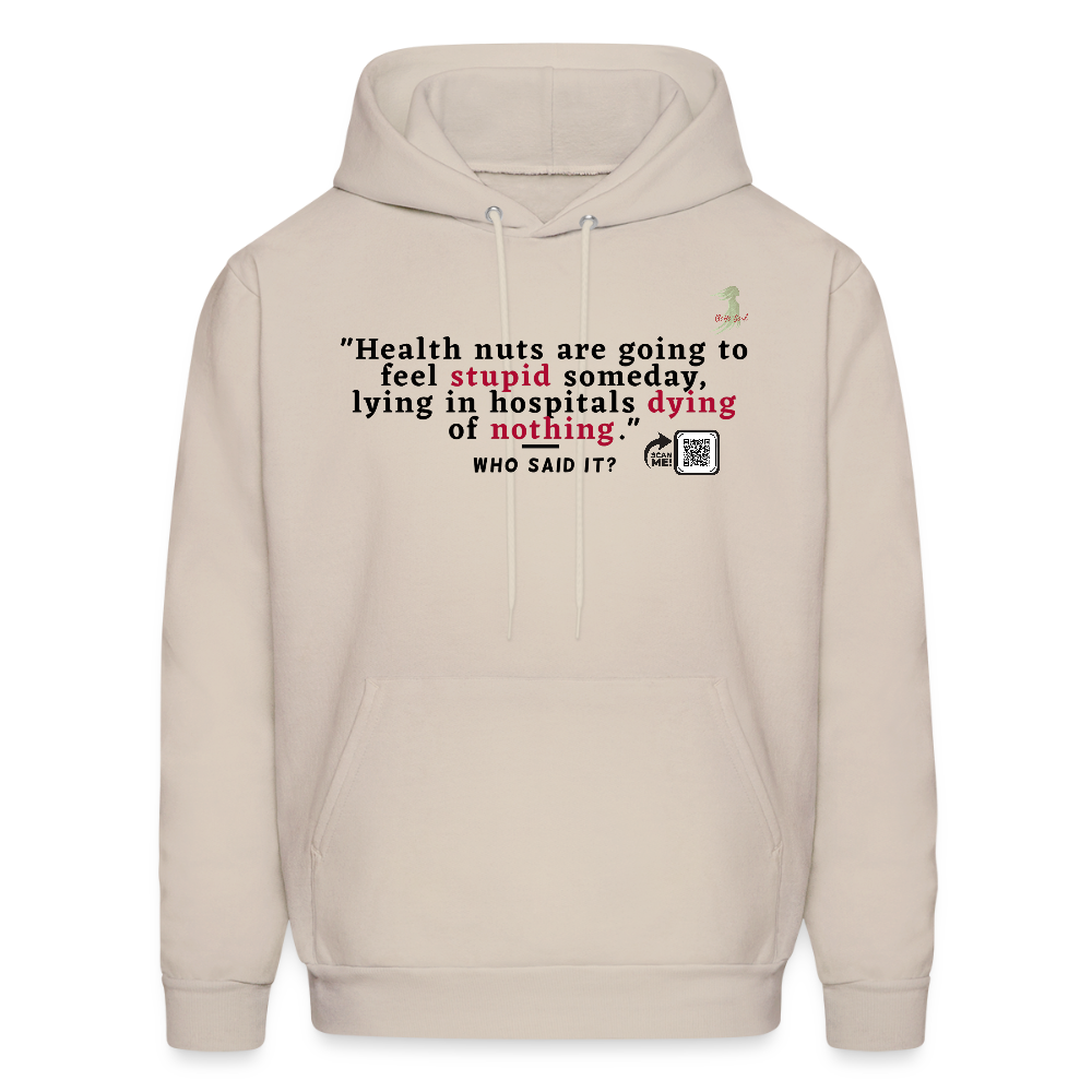 Ever feel like life’s too short for kale smoothies and endless gym sessions? Slip into our cheeky “Health Nuts” hoodie and let the world know you’re on team “live a little”! Featuring the hilarious Redd Foxx quote: “Health nuts are going to feel stupid someday, lying in hospitals dying of nothing” boldly printed in playful, retro-inspired fonts on super-soft, premium cotton that’s as comfy as your favorite guilty-pleasure snack. This adorable hoodie is perfect for lazy Sundays, coffee runs, or gifting to that friend who’s always preaching about superfoods (we won’t tell if you add a donut with it ). Besides, who says sarcasm can’t be cute? Grab yours now and wear your witty wisdom proudly. After all, laughter is the best medicine… or is it pizza? You decide!