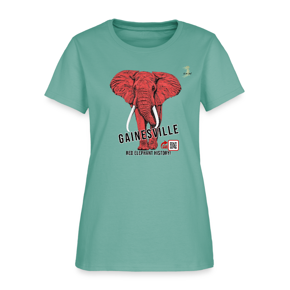 Scan the QR Code on the Tee to explore the landing page and full story of the Gainesville Red Elephant.